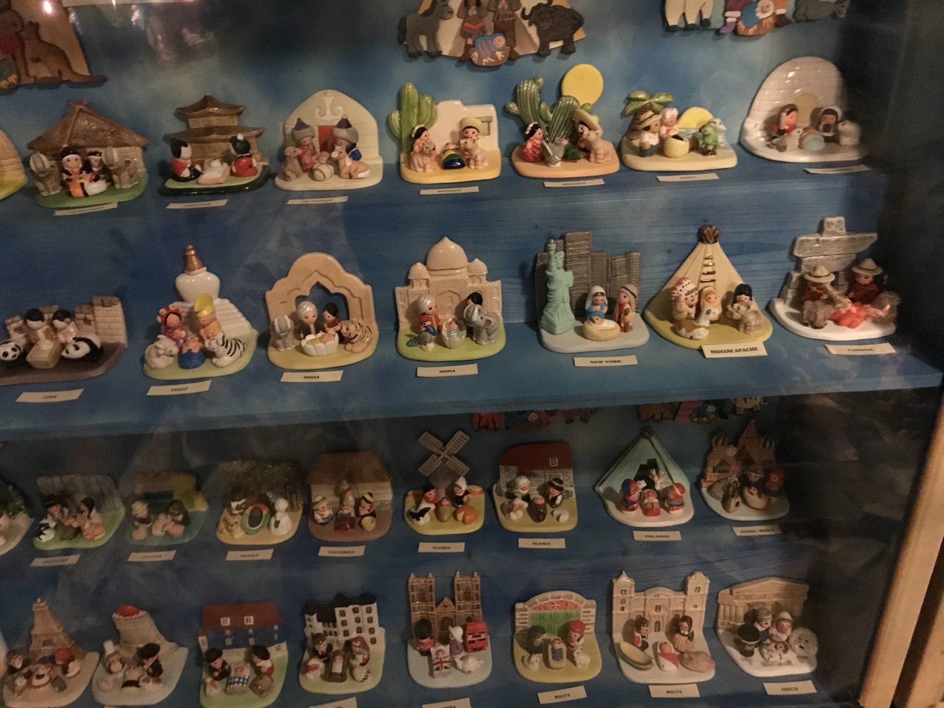 1500 rappresentazioni, provenienti da ogni parte del globo e realizzate con i materiali più diversi, dalla classica terracotta e ceramica, al gesso, alla plastica, al legno , alla resina, alla cera d’api, ai sassi, all’oro, all’argento fino ai tappi di sughero , alle noci, alle bottiglie di plastica riciclate, alle lattine e tanti altri materiali impossibili da elencare.